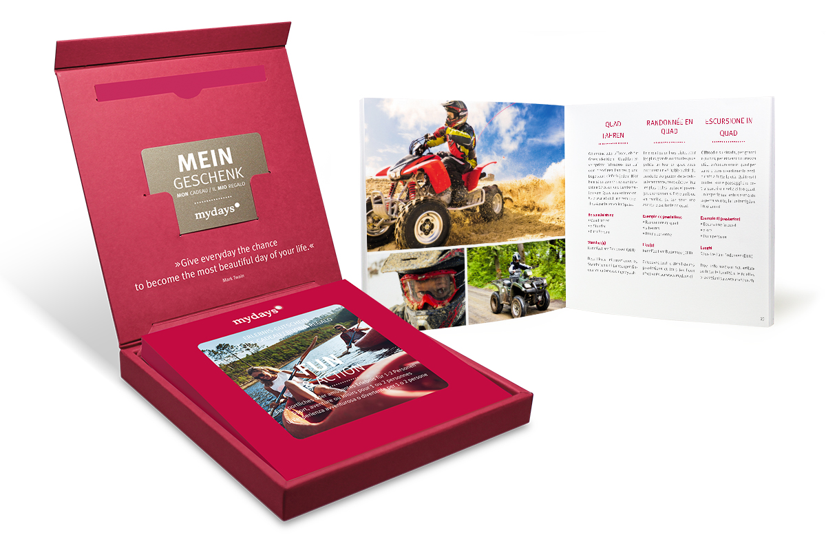 Kein passendes Erlebnis dabei? Mit dem Wertgutschein in dieser Box kannst Du die Erlebniswelt auf mydays.ch erkunden und einfach Dein gewünschtes Ticket auswählen.