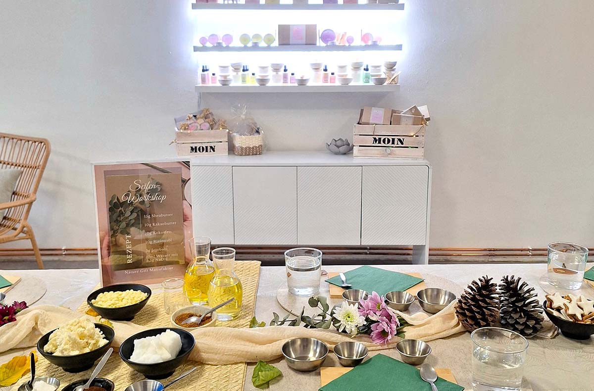 - Erstelle deine eigene Seife (ca. 50 g) mit Bio-Rohstoffen und ätherischen Ölen