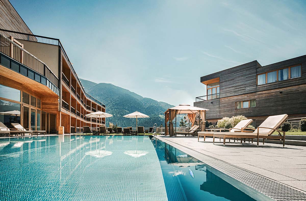 - Nutzung des 1.500m² großen Wellnessbereichs mit Hallenbad, Bio-Badeteich, Berg-Kristallsalz-Solebad, Bei-Heusauna, Tiroler Schwitzstube, Erlebnisduschen, Kneipp- & Kübeldusche sowie Panorama-Ruheräumen