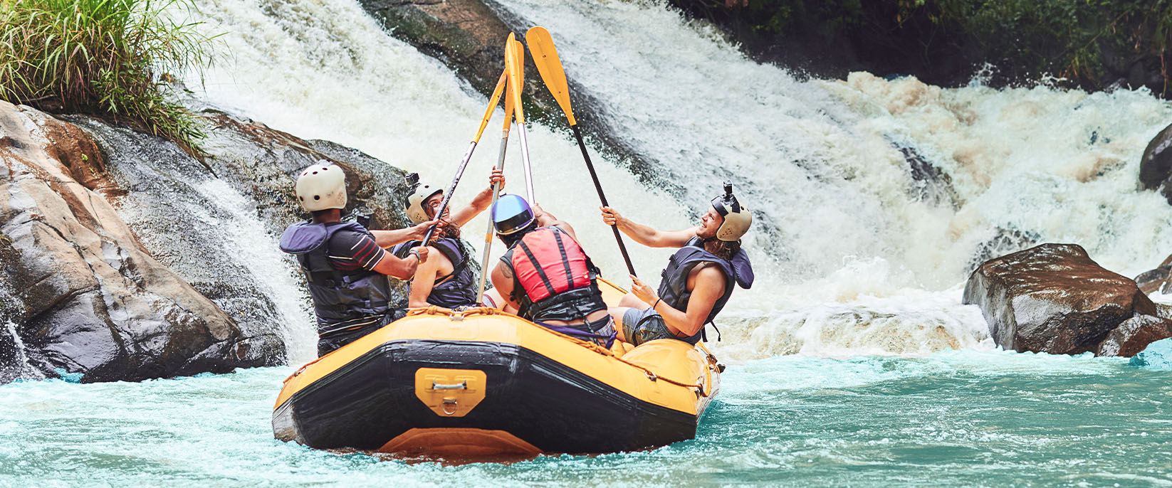 - Leihausrüstung: Raftingboot, Paddel, Weste