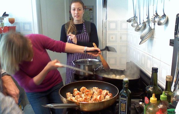 In Münster angekommen lernst Du den Kochprofi und die anderen Teilnehmer kennen. Bevor es richtig losgeht, tauscht Ihr Euch aus und Du wirst sehen, dass von Kochanfänger bis Hobbykoch alles dabei ist. Ihr besprecht das vorgegebene Menü und geht gemeinsam die Rezepte durch. Die Gerichte, die Ihr heute zaubern wollt, schmecken allen und sind vielseitig und raffiniert. Alle Zutaten und Utensilien werden Dir selbstverständlich zur Verfügung gestellt und dann kann es auch schon losgehen!