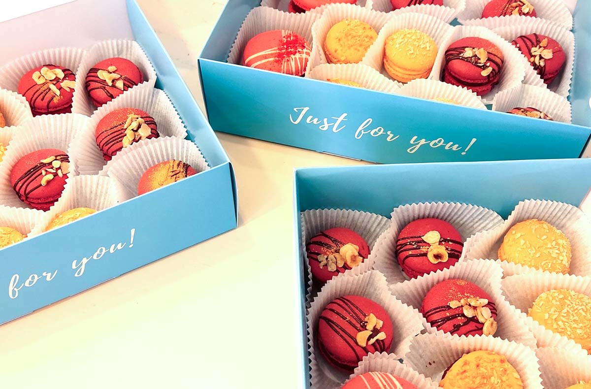 Lerne das Bunte einfärben, das korrekte Aufspritzen und Backen und die Herstellung der süßen Füllungen
