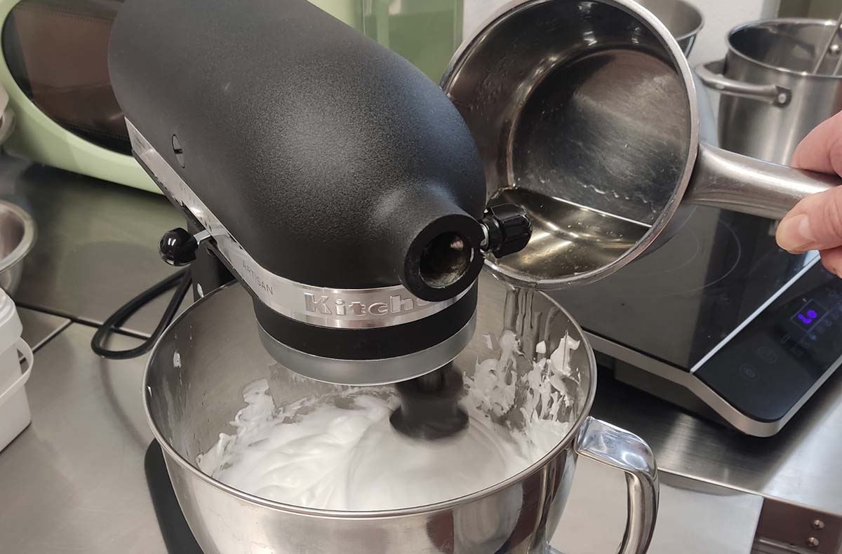 Zubereitung von Crème brûlée Macarons, Pistazien Macarons, Karamell-Mango Macarons, Schoko-Himbeer Macarons (Frühjahr/Herbst) und Schokoladen-Spekulatius Macarons, Sauerkirsch Macarons, Zimt-Karamell Macarons und Vanille Macarons (November/Dezember)