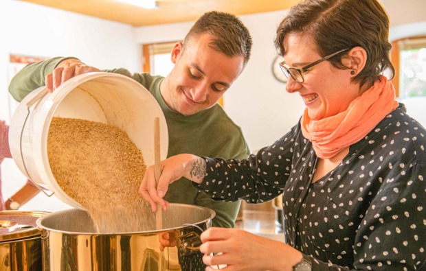 Schon bei Deiner Ankunft wirst Du kulinarisch empfangen. Zur Begrüßung erhältst Du eine Butterbreze und Kaffee, damit startest Du voller Tatendrang in das Seminar. Zwischendrin stärkst Du Dich mit einem rustikalen Mittagessen. Du siehst, für das leibliche Wohl ist beim Braukurs in Tettnang in der Nähe des Bodensees definitiv gesorgt. Das hast Du Dir bei so viel Einsatz aber sicher auch verdient, oder?