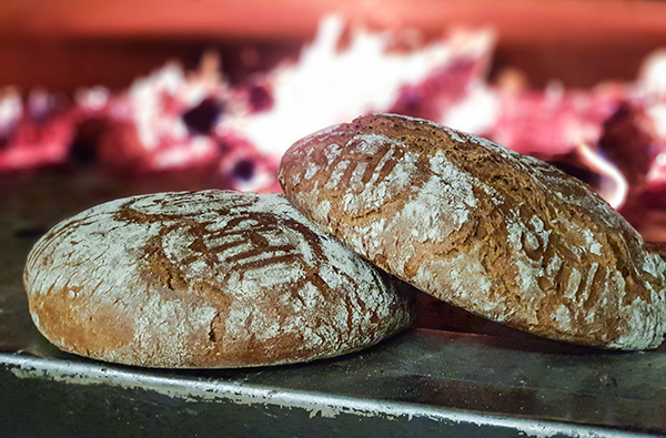 Streue Mehl auf die Arbeitsfläche und lege den Teig aus. Jetzt knetest Du noch, bevor Du den Teig in die gewünschte Form bringst. Heize vor und schiebe Deinen Teig in den heißen Holzofen. Warten ist angesagt. Mhm, es riecht so lecker. Hole die Brote heraus. Außen knusprig, innen luftig und feinporig: Deine Brote schmecken genauso gut wie vom Bäcker.