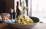 - Menübegleitender Wein nach Wahl des Hauses (1 Flasche, 0,75l) und Wasser (1 Flasche, 0,75l)