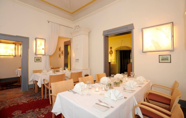 Auch das Anwesen des Pförtnerhofs hat historischen Charakter und bildet mit mehreren, 1727 erbauten Gebäudeteilen eine imposante und stimmungsvolle Kulisse für Euer Romantik Dinner. An warmen Tagen lädt ein lauschiger Innenhof zum Essen und Trinken ein, bei kühlen Temperaturen genießt Ihr Euer Menü in der eleganten Atmosphäre der barocken Innenräume. Die Küche des Hauses präsentiert mediterrane Köstlichkeiten in modernem, frischem Gewand. Zur Verwendung kommen dabei hochwertige Zutaten und marktfrische Produkte.