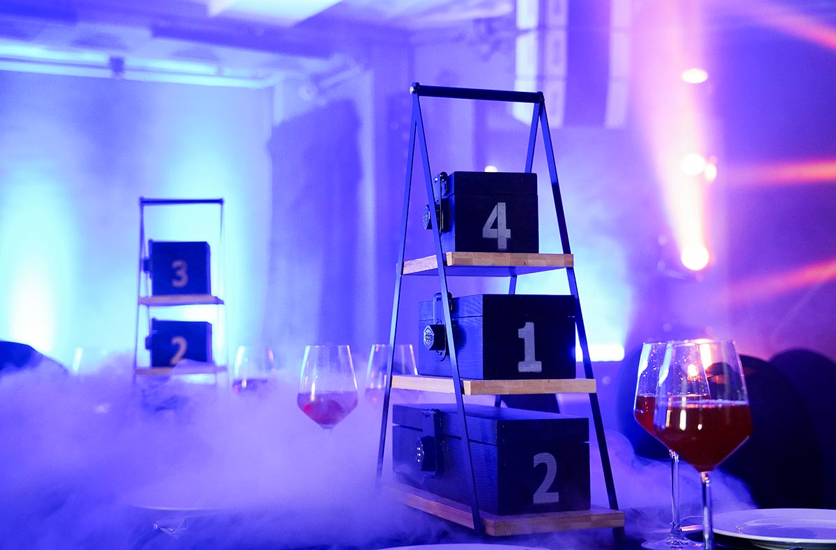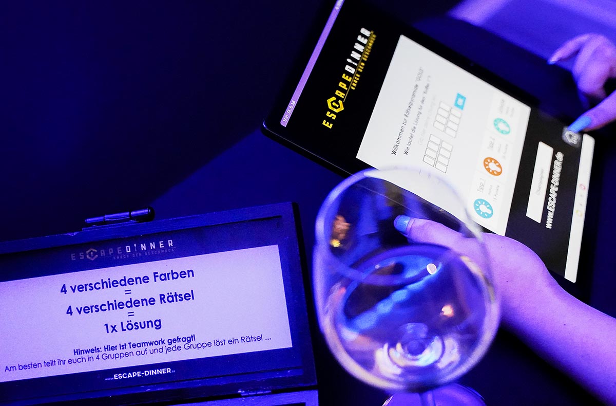 Wird gestellt: Tablets und Rätselmaterialien für jedes Team, Videos, Moderation, Champagner-Siegerehrung