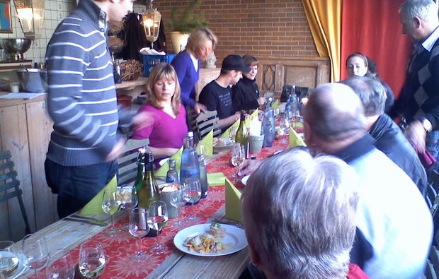 Wasser, Wein, Saft, Tee und Kaffee inklusive