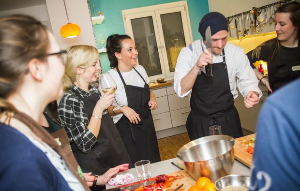 Mit viel Vorfreude, etwas Appetit und ordentlich Motivation kommst Du am Kochstudio an, das wie ein geräumiges Loft gestaltet ist und daher einladend und hell wirkt. Du machst Dich mit den anderen Teilnehmern beim KochkursFranzösische Küche Münster bekannt und merkst schnell, dass sich neben blutigen Anfängern auch erfahrenere Hobbyköche zusammengefunden haben. Euch alle verbindet die Neugierde auf die Französische Küche und ganz sicher wisst Ihr auch wahre Gaumenfreuden zu schätzen.
