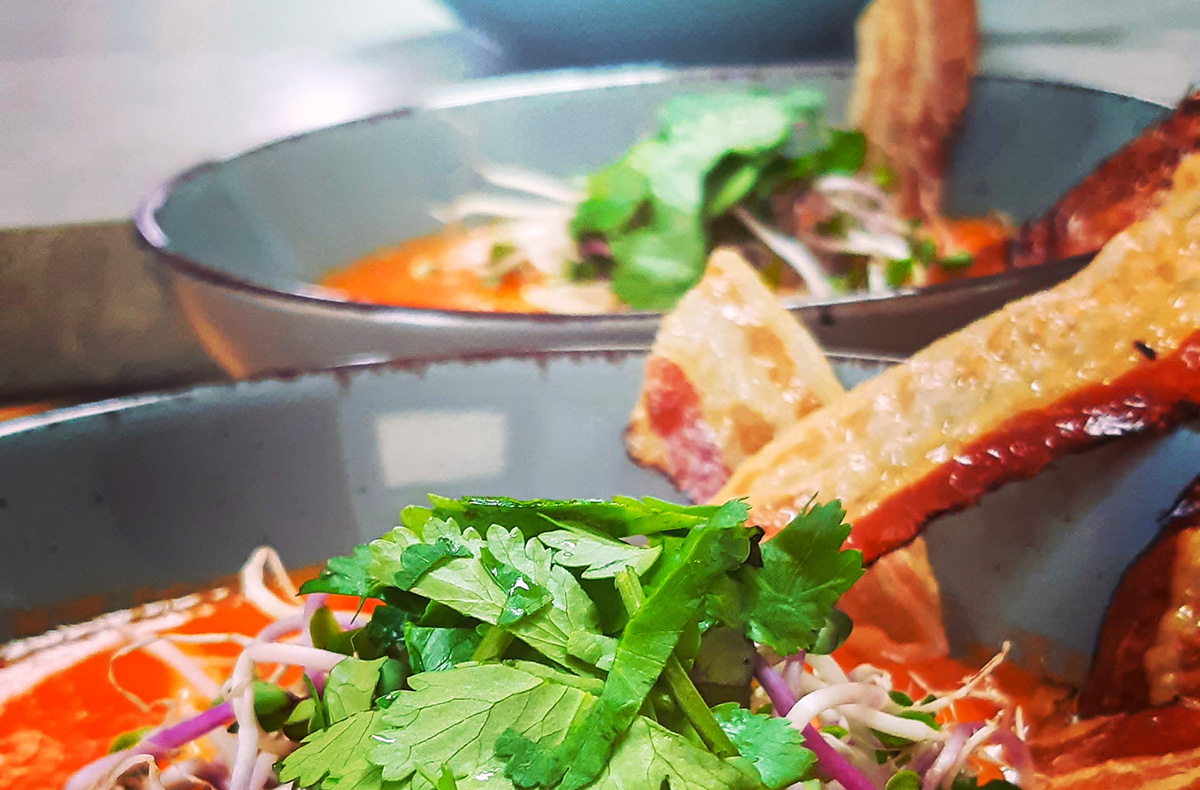 Nach dem gemeinsamen Kochen folgt das Highlight des Kurses: die Verkostung. In einer entspannenden und zugleich anregenden Atmosphäre probierst Du jedes Gericht aus und genießt dabei eine Auswahl an passenden Getränken wie Bier, Wein und alkoholfreien Alternativen. Diese Phase des Kurses stärkt nicht nur den Gemeinschaftsgeist, sondern auch das Geschmackserlebnis.