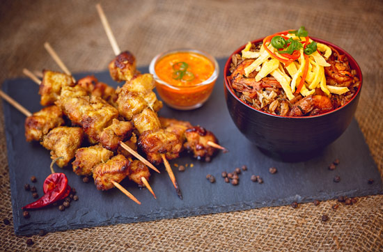 Wer an asiatische Küche denkt, der hat als Erstes wohl chinesische Reis- und WOK-Gerichte im Sinn, Sushi natürlich und vielleicht noch indische Curries. Die indonesische Küche hingegen hat ihren Durchbruch hierzulande noch nicht endgültig geschafft und gilt noch immer eher als Geheimtipp – völlig zu Unrecht jedoch, wie Du bei Deinem indonesischen Kochkurs in Köln erfahren wirst. Als Inselstaat verfügt Indonesien über einen reichen Fundus an aufregenden Fisch- und Meeresfrüchtegerichten. Auch Schärfe und aufregende Gewürze spielen eine große Rolle. Verschiedene Kräuter wie Zitronengras, Galgant und Koriandergrün, Limettenblätter, Knoblauch und Tamarinde werden traditionell fein gemörsert und zu einer Paste verrührt, damit die Zutaten harmonisch miteinander verschmelzen. Auch Aromen mit verheißungsvollen Namen wie Trassie oder Kemiri lernst Du heute kennen. Ein weiterer Aspekt, der die indonesische Küche so interessant macht, sind die Einflüsse der Engländer und Holländer, die im 19. Jahrhundert als Kolonialmacht im Land waren. Kurz gesagt: Indonesisch ist eine abwechslungsreiche und vielfältige Fusionsküche, die mit gepfefferten Aromen und vollmundigen Gewürzen ein wahrer Gaumenschmaus für Feinschmecker ist.
