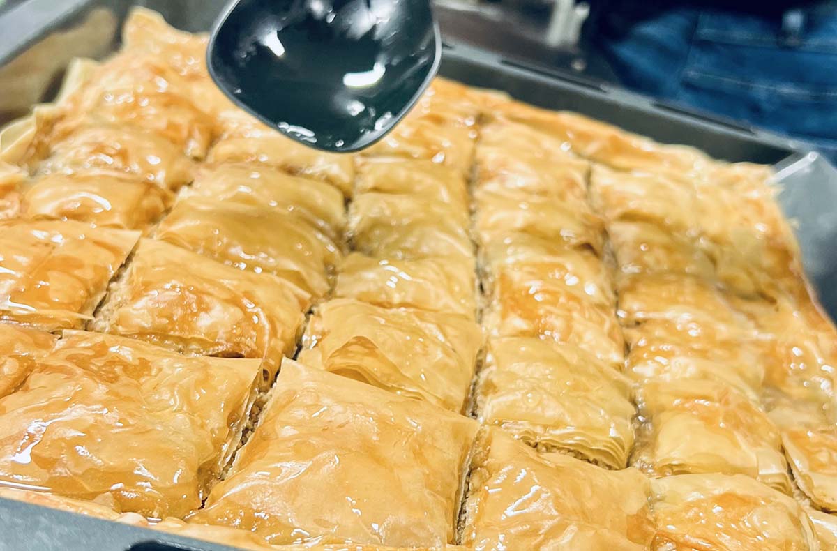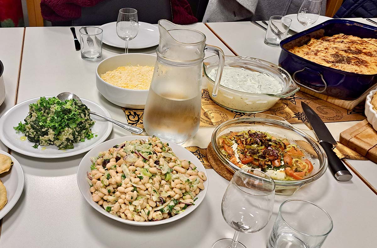 • Zubereitung von Falafel mit Hummus, Orientalische glasierte Karotten mit Joghurtcreme, Dolmadakia (gefüllte Weinblätter mit Reis und Kräutern), Gemüse-Tajine mit Harissa und Couscous, Zarte Zucchini mit Harissa und Zitrone, Babaganoush
