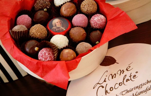 Natürlich soll auch Dein Gaumen bei diesem schokoladigen Erlebnis nicht zu kurz kommen. Verkoste verschiedene Pralinen mit verbundenen Augen. Dabei kannst Du Dich voll auf Deinen Geschmackssinn konzentrieren und bestimme so die richtige Sorte. Dazu wird Dir Kaffee, Wasser und Cognac gereicht.