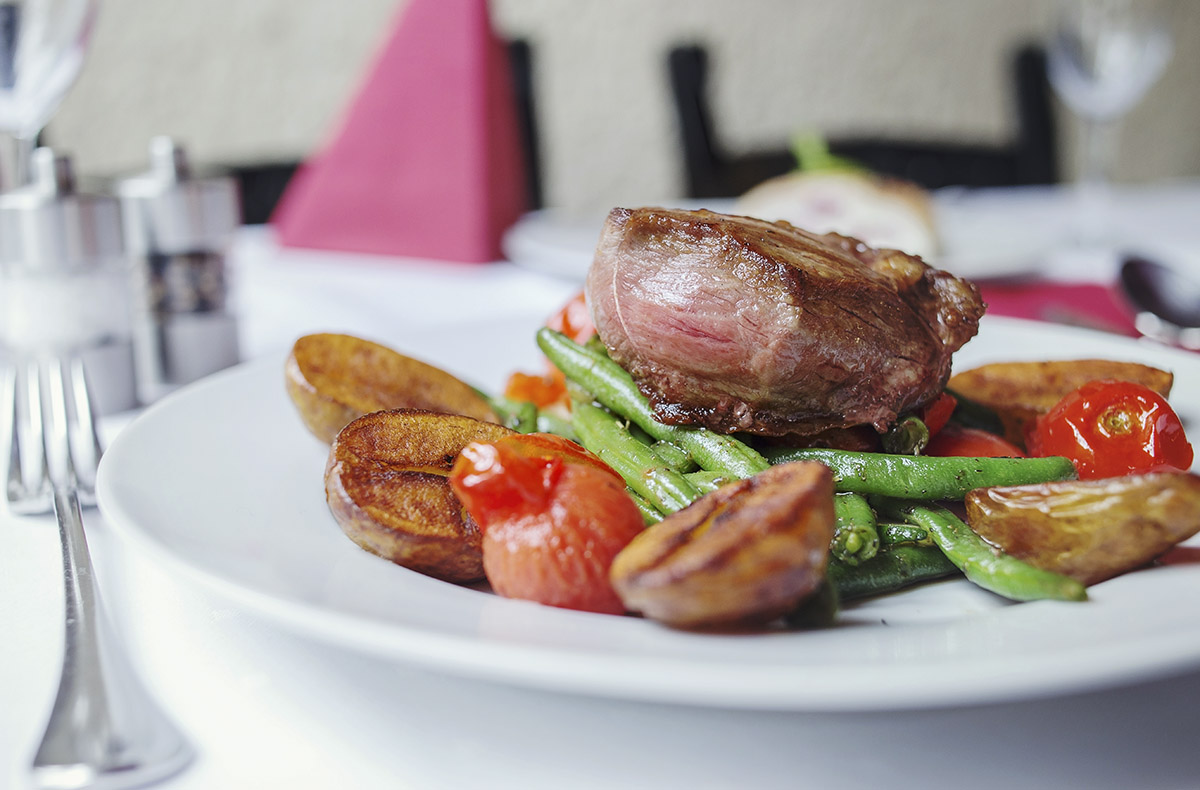 …des exquisiten 4-Gänge-Menüs mit saisonalen Zutaten. Wow, es schmeckt köstlich! Ihr fühlt Euch wie frisch verliebt und schaut Euch tief in die Augen während Ihr weiter genießt. Zum Dessert gibt es noch nach Wahl einen Kaffee, Tee oder eine heiße Schokolade. Damit wird dieser romantische Abend perfekt abgerundet. Großartig!