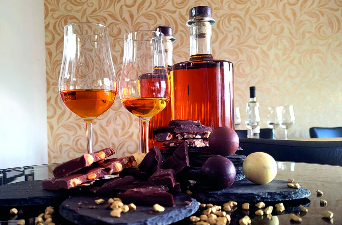 Fachlich kommentierte Verkostung von fünf verschiedenen hochwertigen Bio-Rumsorten und Rumliköre sowie Schokoladen