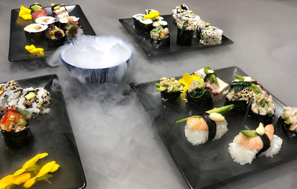 Zubereitung verschiedener Sushi-Sorten wie Handrolls, Makis, Inside-Outs, Nigiris