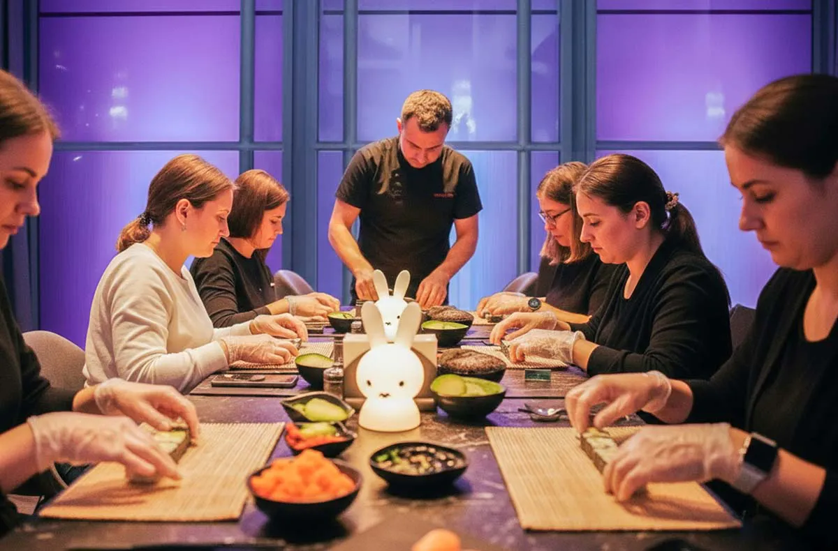 • Schritt-für-Schritt-Durchführung von zwei erfahrenen Sushi-Meistern