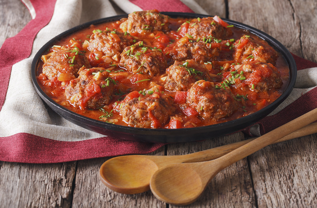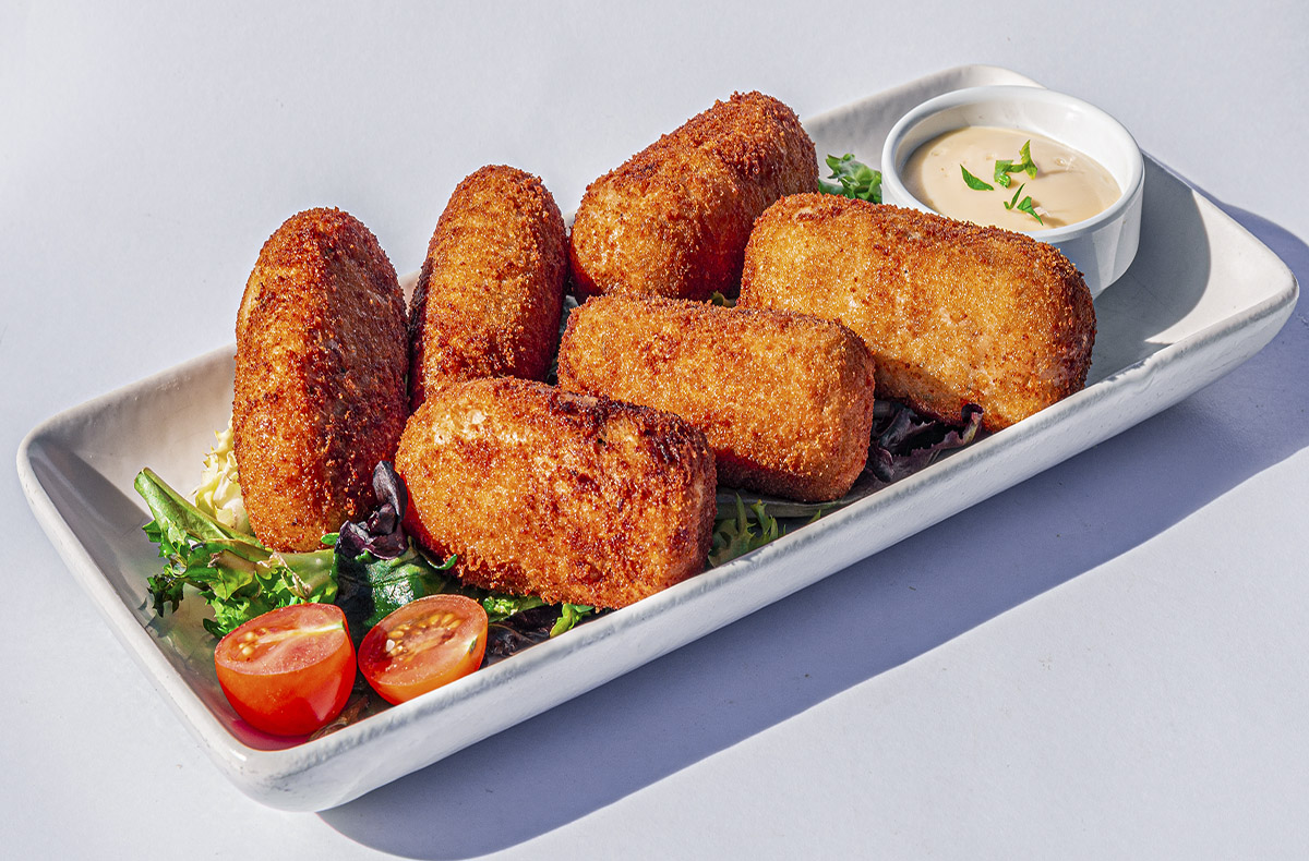 In der Pfanne frittieren die Croquetas mit Serranoschinken langsam goldbraun und Du vermengst die feinwürzige Tomatensauce mit den Fleischbällchen. Es sieht lecker aus, duftet fantastisch fruchtig und Du kannst die Verkostung kaum erwarten. Jetzt noch anrichten und schon schnabulierst Du bei einem kühlen spanischen Bier. Einfach wow!