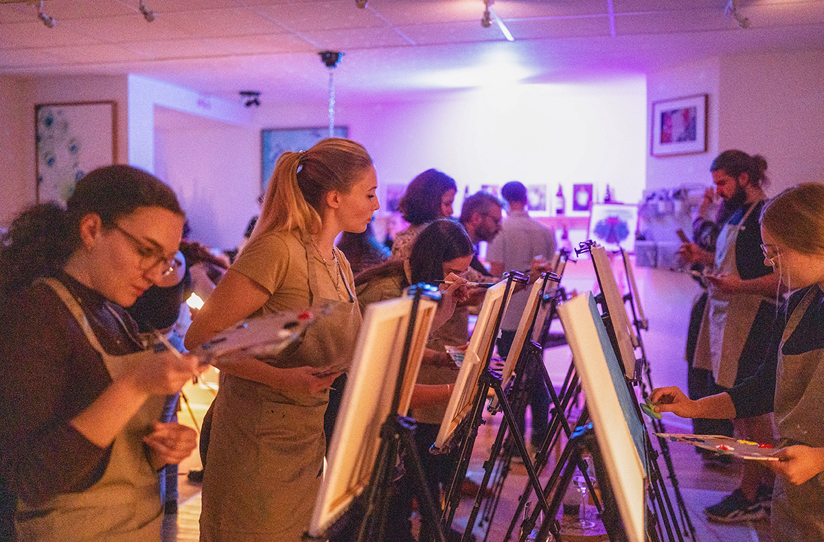 Kunst und Klang treffen bei Techno and Paint in Frankfurt auf genussvolle Vielfalt. Während energiegeladene Techno-Beats eine kreative Stimmung zaubern, gestaltest Du mit Pinsel und Acrylfarben Dein eigenes Leinwandbild – begleitet von einer einfühlsamen Anleitung durch erfahrene Künstler. In dieser angenehmen Umgebung entfaltet sich Deine persönliche Handschrift auf dem Stoff, ganz in Deinem Rhythmus. Eine fein abgestimmte Weinverkostung rundet den Abend sensorisch ab – vier ausgewählte Tropfen, ob mit oder ohne Alkohol, führen durch feine Aromenwelten. Dieses Erlebnis regt an und entspannt zugleich und schenkt nicht nur Farbe auf der Leinwand, sondern auch in Gedanken. Lass Dich in Frankfurt auf ein stilvolles Zusammenspiel von Techno, paint und Geschmack ein!