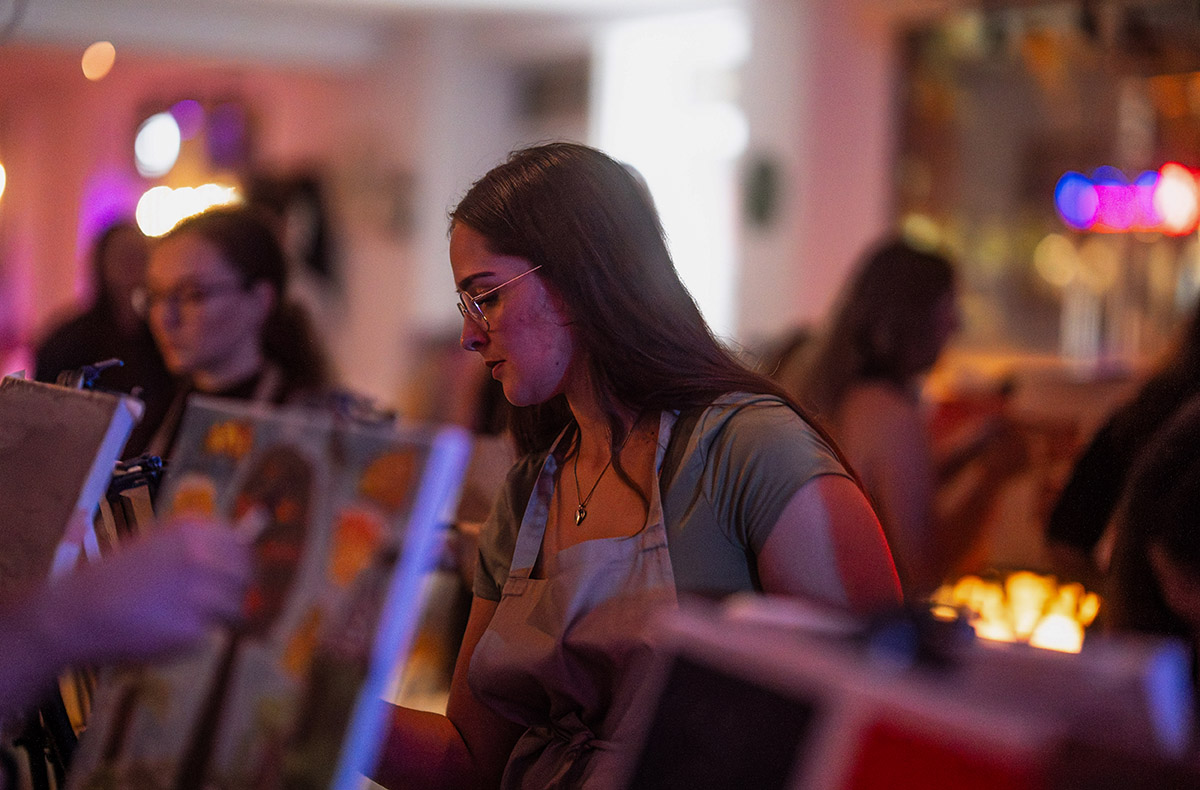 Zwischen schimmernden Farben und mitreißenden Klängen taucht Ihr in eine unvergessliche Atmosphäre ein. Am Ende des Abends könnt Ihr Euer Meisterwerk vorstellen und mit nach Hause nehmen – als bleibende Erinnerung an ein Event, das Kunst, Musik und Genuss perfekt vereint.