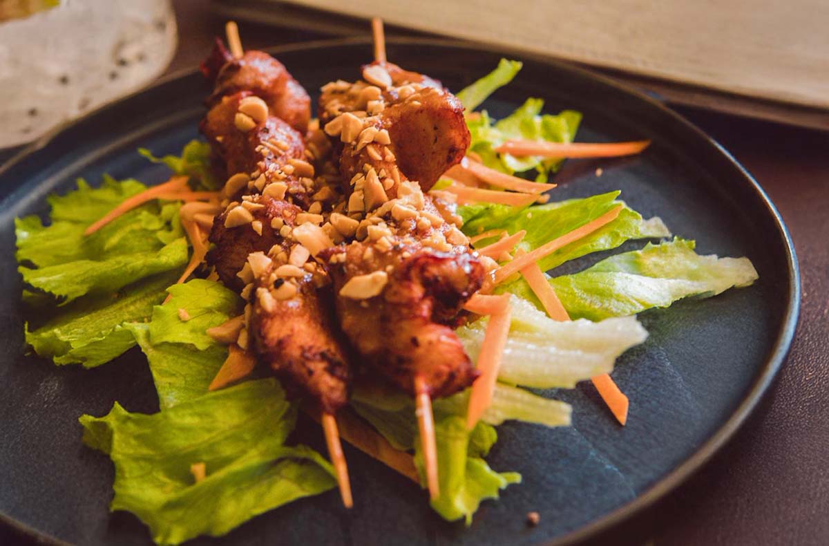 Zubereitung von Bo La Lot, Goi Cuon Summer Rolls, Pho Bo Tai, Udon Xao Chay, Xoai Creme
