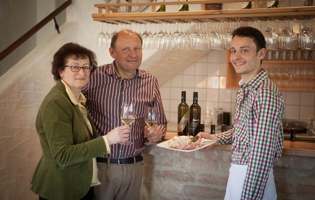 Die erfahrene Winzerfamilie führt Dich mit einigen interessanten Anekdoten und wissenswerten Informationen durch diese ganz besondere Weinverkostung. Poysdorf weiß aber nicht nur mit regionalen Qualitätsweinen zu überzeugen, sondern hält bei einer traditionellen Winzerjause mit typischen Spezialitäten auch ein echtes Highlight für das leibliche Wohl parat. Die Verkostung hält bis zu sechs verschiedenen Weinen für Dich bereit, deren Genuss sich für Dich zur wahren Geschmacksexplosion entwickeln wird. Während der Verkostung steht Dir selbstverständlich auch ausreichend Mineralwasser zur Verfügung. Als kleines Dankeschön erwartet Dich im Anschluss eine Flasche Grüner Veltliner zur privaten Verkostung zum mit nach Hause nehmen. Der fruchtig-würzige Weinviertel ist ein echtes Gaumenkino und repräsentiert perfekt diese Weinverkostung.