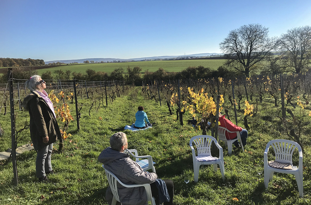 Nach einer Vorstellungsrunde brichst Du gemeinsam mit Deiner Gruppe auf zu einem Ausflug in die idyllischen Weinberge. Umgeben von grüner Natur kommst Du 3 Stunden lang zur Ruhe und wanderst durch die malerischen Landschaften. Hier schaltest Du bei erholsamer Meditation ab und lässt bei Achtsamkeitsübungen die Seele baumeln. Während Du zwischen den Reben zur Ruhe kommst, freust Du Dich außerdem über ein köstliches Tasting!