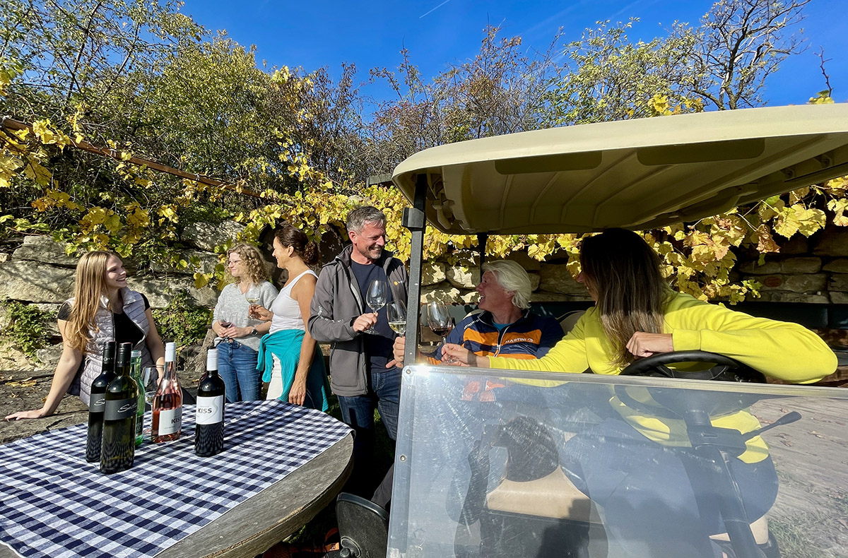 Bei dieser einzigartigen Weinbergrundfahrt in Jois genießt Ihr eindrucksvolle Blicke auf die sanften Weinberge am Neusiedler See. Im komfortablen Golf Car gleitet Ihr durch das Leithagebirge – umgeben von Ruhe, Sonne und Weite. Zwischen den Reben erwartet Euch eine liebevoll gestaltete Weinverkostung, eingebettet in die Stimmung der Natur. Die Aromen, die Stille, der weite Blick auf das glitzernde Wasser – all das schafft Erinnerungen, die bleiben. In Jois wird Eure Gemeinsamzeit kostbar. Perfekt für alle, die mit ihrem Lieblingsmenschen bedeutungsvolle Momente schenken oder teilen möchten. Lasst Euch von diesem Genuss berühren und schafft Eure eigene Geschichte.