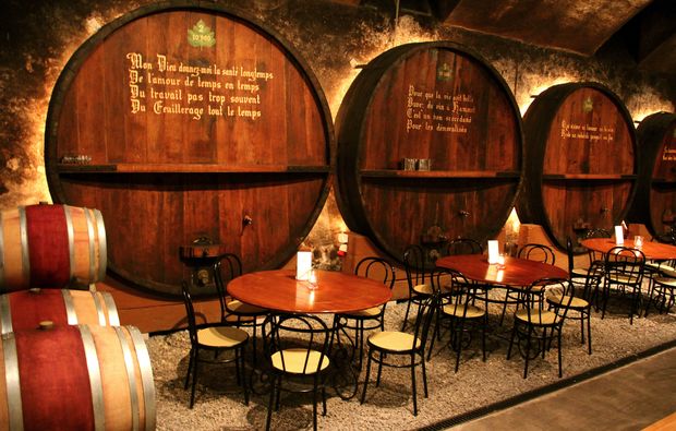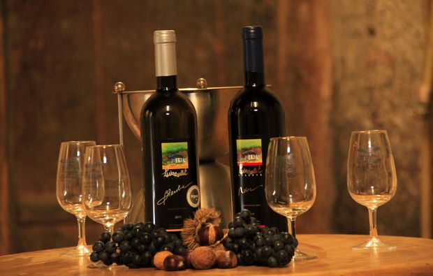 • Wein-Paket mit 4 roten Wertmarken (jeweils gültig für eine betreute Verkostung von mindestens 3 Weinen) und 1 grüne Wertmarke (einlösbar gegen eine Flasche Wein Deiner Wahl bei einem Winzer)