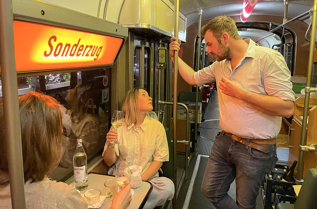 • Weinprobe in historischer Straßenbahn