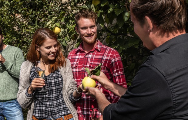 Im Anschluss wird es dann kulinarisch. Wie man Wein richtig verkostet, zeigt Dir der Winzer und reicht Dir im Weingarten zehn verschiedene Weine zur Probe. Bei dieser Verkostung erklärt er Dir natürlich die wichtigsten Fakten zu jedem Wein und Du wirst schnell die Unterschiede zwischen den Tropfen feststellen. Vermutlich bist Du jetzt zwar voller Freude über all das Neue, das Du bisher gelernt hast, aber auch erschöpft von der Weinbergwanderung Worms. Auch dafür ist selbstverständlich gesorgt: Im Weingewölbe mit seinem urigen Charme steht Dir zum Abschluss ein warmes Winzerbuffet zur Verfügung, über das Du Dich nun hermachen darfst. Zum Essen stehen drei Sorten Wein zur Auswahl: trockener, Riesling, lieblicher Rosé und ein trockener Spätburgunder Rotwein. Außerdem bietet der Hausherr auch Mineralwasser und Traubensaft an.