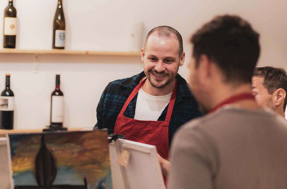 Während Ihr an Euren Kunstwerken arbeitet, laden kurze Pausen zur Verkostung erlesener Weine ein. Genießt spannende Geschichten über die Winzerinnen und Winzer und erfahrt Wissenswertes über die verschiedenen Sorten. Auch alkoholfreie Alternativen stehen bereit, sodass für jeden Geschmack etwas dabei ist.