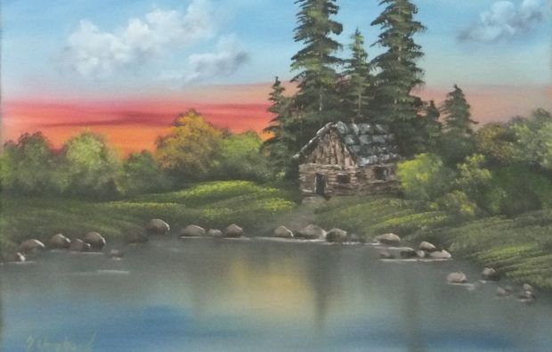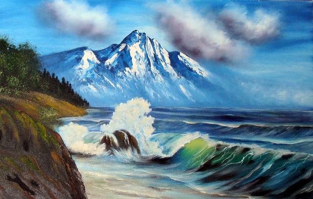 Malen eines ca. 45 x 60 cm großen Ölbildes nach der Bob Ross ®-Technik unter professioneller Anleitung