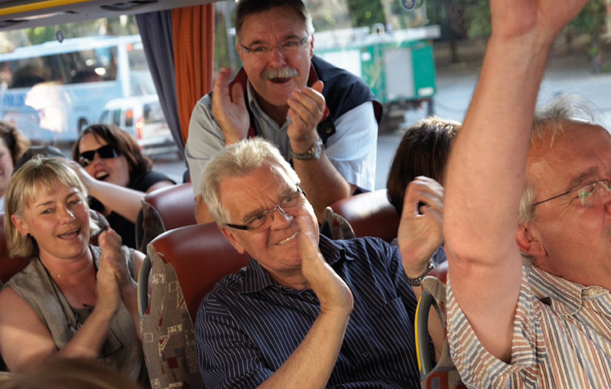 Im Comedy-Bus wirst Du zu den wichtigen Sehenswürdigkeiten chauffiert