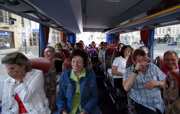 Im Comedy-Bus wirst Du zu den wichtigen Sehenswürdigkeiten chauffiert
