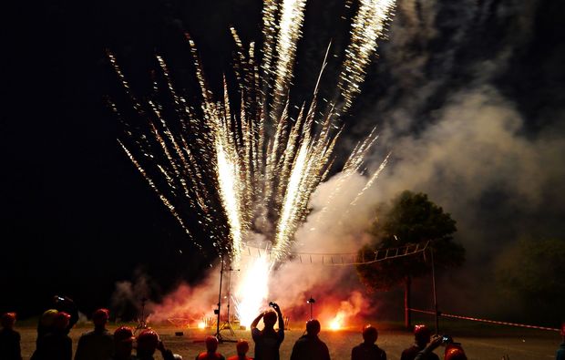 Mit Augen, die funkeln werden wie die schönste Explosion am Himmel, machst Du Dich nachts gemeinsam mit Deinem Team auf den Rückweg zum Betriebsgelände der Pyrotechnikerschule. Dieses Erlebnis wirst Du noch lange in feuriger Erinnerung behalten.