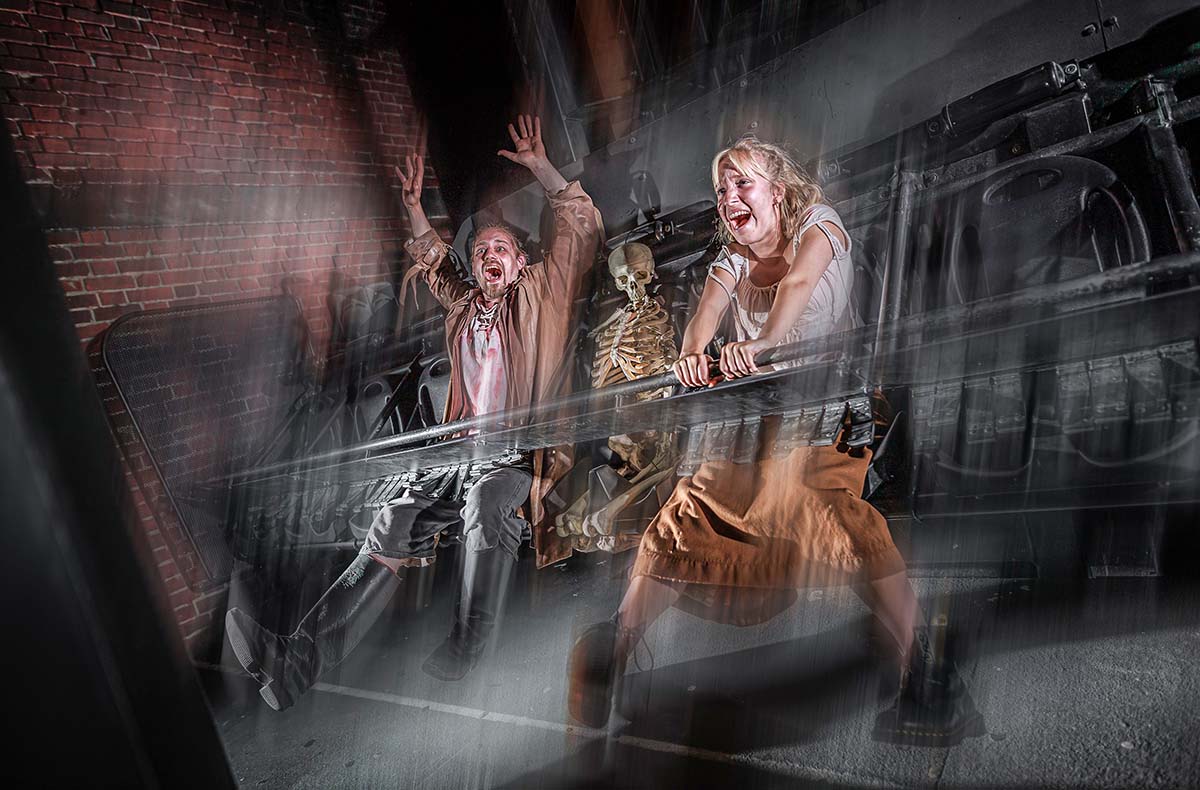Hier begegnet Ihr echten Schauspielern, die euch in 13 interaktiven Shows mitnehmen – von der Inquisition über den Großen Brand bis zu den Piraten. Besonders nervenaufreibend ist die Fahrt mit dem Freifallturm „Drop Dead“, bei dem Euch der Atem wegbleiben wird.