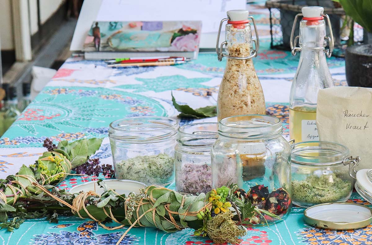 Wird gestellt: Nutzung des Kräutergartens, Räume für die Zubereitung, kleiner vegetarischer Snack, Produkte für die Herstellung von Tinkturen, Heilweinen etc., Skripte und Rezepte vor Ort