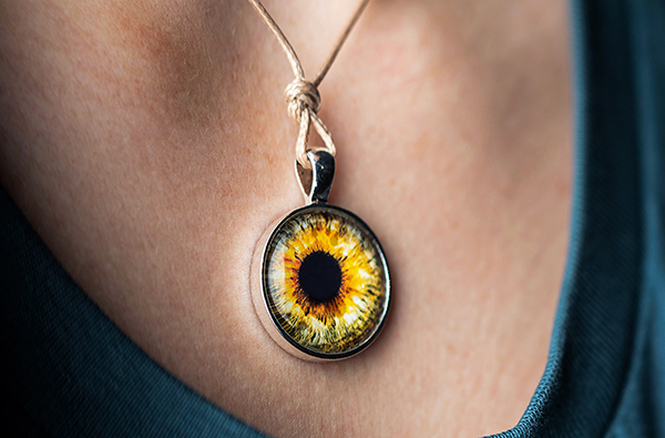 So nah und bunt hast Du Dein Auge sicher noch nie gesehen. Deine Iris strahlt und zeigt Dir all ihre schönen Eigenheiten. Damit Du noch länger Dein Augenmerk darauf lenkst, bekommst Du Deine Iris mit. Wie? In Form eines Fotos und eines kleinen Anhängers. Der schwarze Hintergrund bringt die Farben besonders knallig hervor.