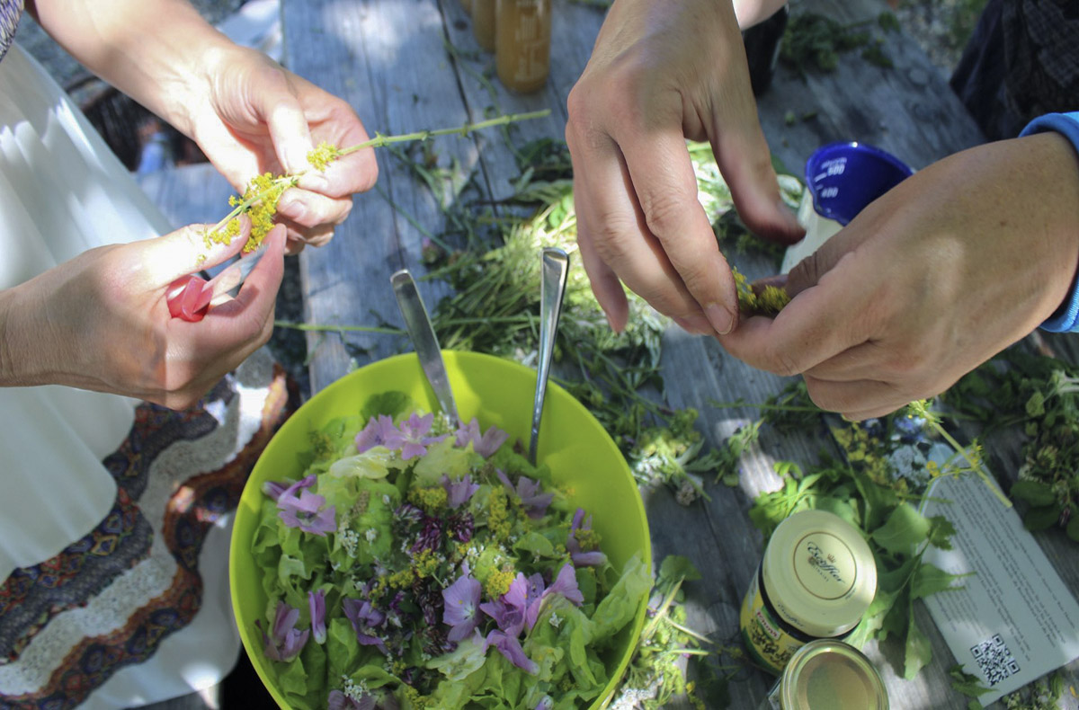 Zubereitung eines exquisiten Kräutermenüs unter freiem Himmel