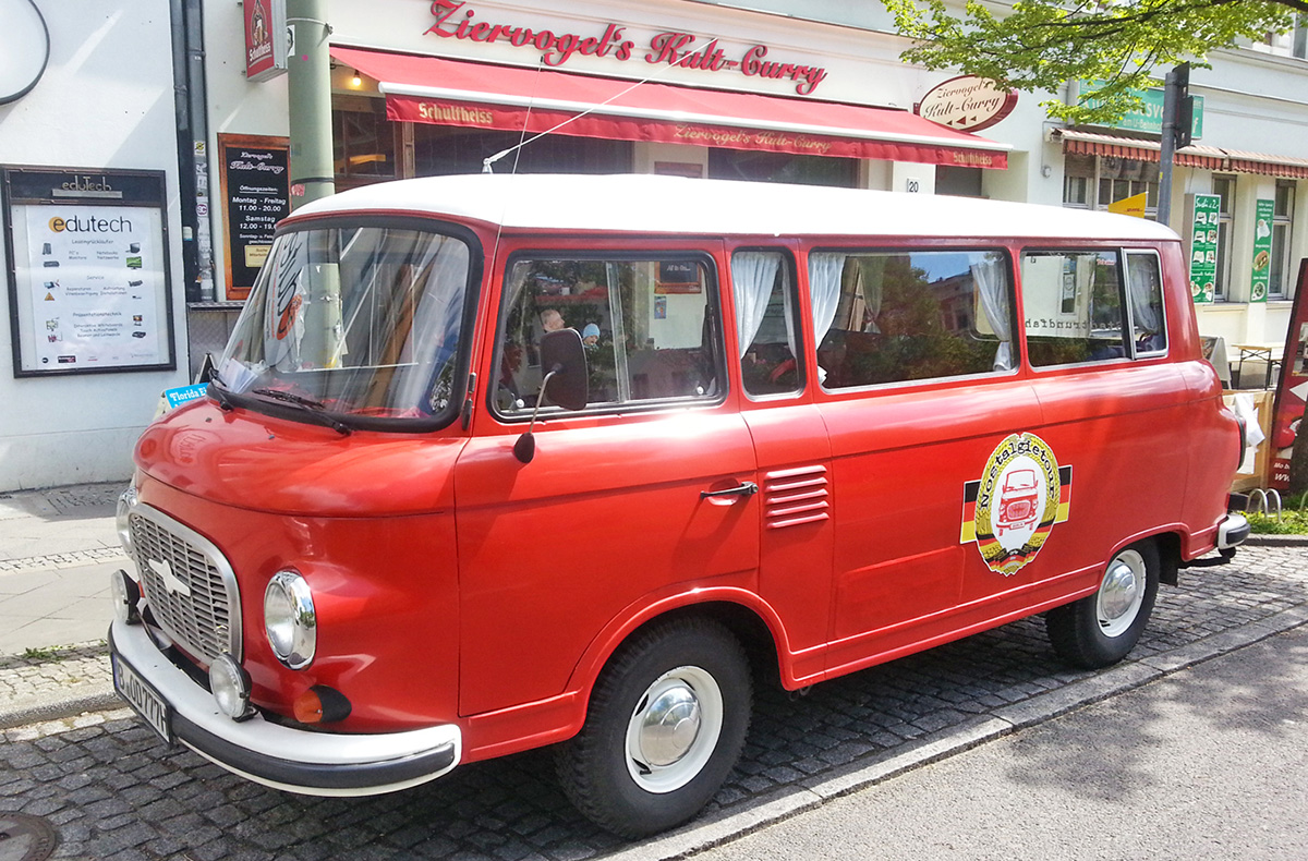 Dieses Erlebnis ist nicht bloß eine Stadtrundfahrt, sondern vielmehr eine Zeitreise in die ostdeutsche Vergangenheit. Mit einem kultigen DDR-Oldtimer-Kleinbus werden unterschiedliche Berliner Sehenswürdigkeiten erkundet und erlebt.
