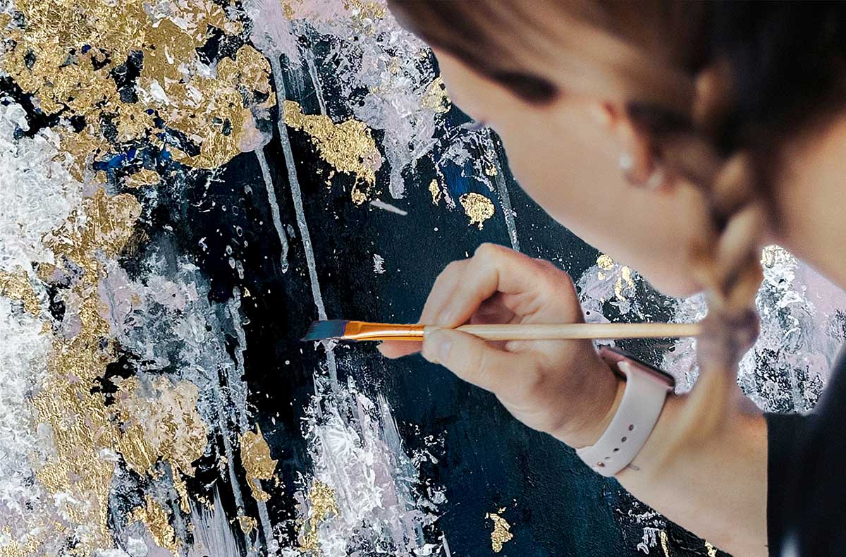 Gestalte dein eigenes abstraktes Kunstwerk mit Blattgold und Blattsilber im Malkurs