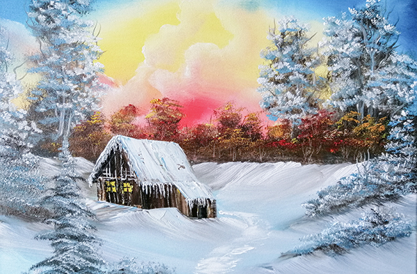 Malen eines Landschaftsmotivs im Stil des Bob Ross oder Malen eines Blumenmotivs/Stilllebens nach Gary Jenkins mit Ölfarbe