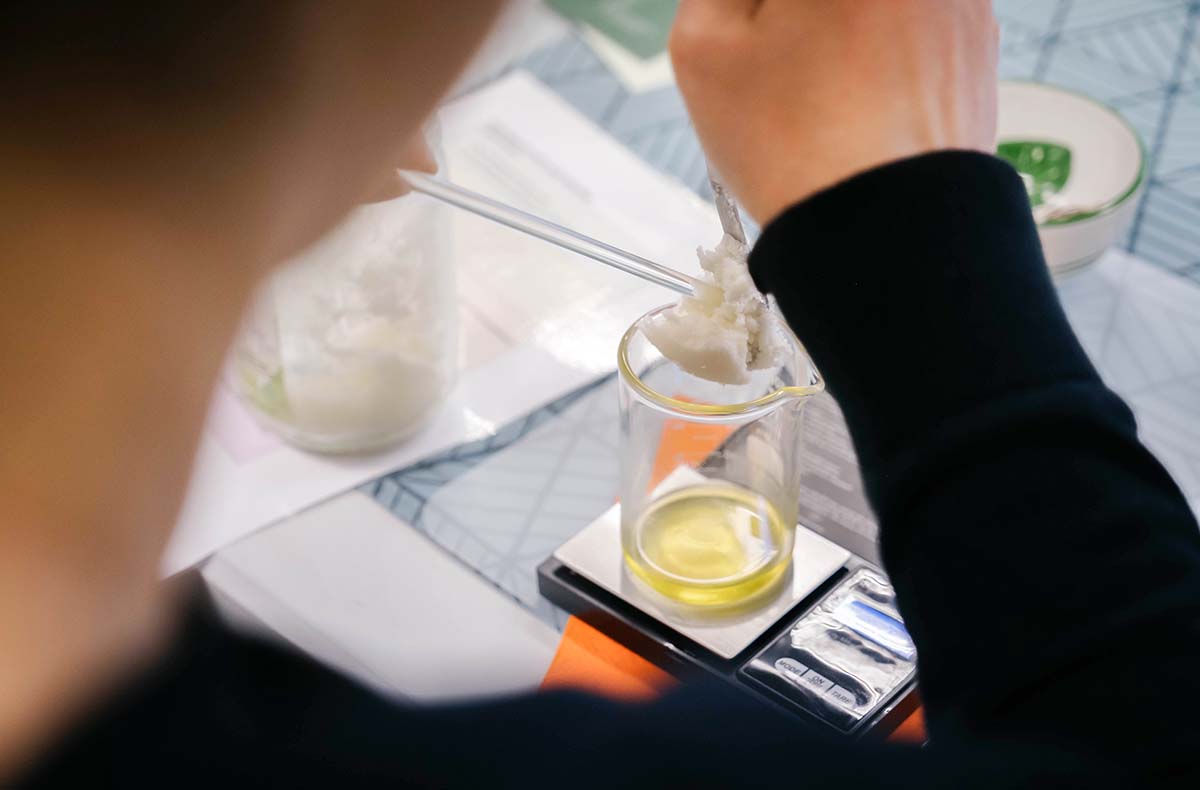 Wird gestellt: Alle benötigten Materialien, Rohstoffe, Werkzeuge und Schutzmaterialien (z. B. Schürzen, Rührutensilien, Behälter)
