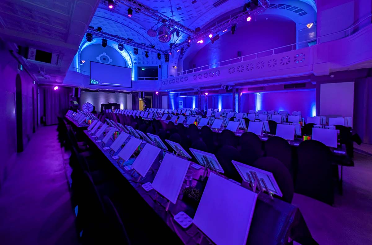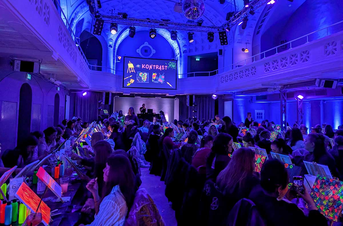 Im Frauenbad in Heidelberg öffnet sich mit Neon Nights Sip & Paint eine Welt voller sanft schimmernder Farben und harmonischer Klänge. Unter dem warmen Schein des Schwarzlichts entstehen auf Deiner Leinwand einzigartige Kunstwerke, die im Dunkeln leuchten und ihre ganz eigene Magie entfalten. Während Du mit leuchtender Neon Paint malst, begleiten Dich sanfte Beats und ein angenehmes Ambiente, das Raum für Ruhe, Kreativität und Ausdruck schenkt. Jeder Pinselstrich wird zu einem Moment voller Ausdruck und Leichtigkeit, der Dich in eine farbenreiche Atmosphäre eintauchen lässt. Paint in the Dark verbindet Kunst, Licht und Klang auf harmonische Weise. Lass Dich verzaubern und gestalte Dein eigenes leuchtendes Erinnerungsstück.