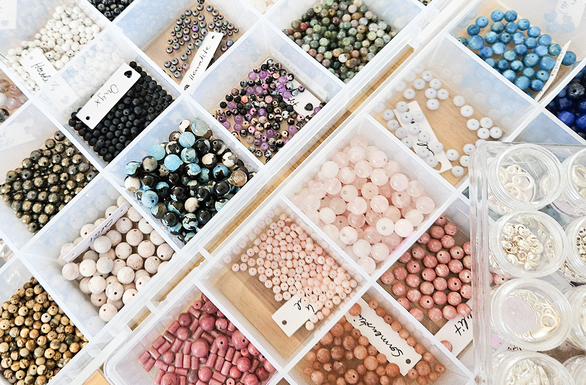 Auswahl an ausgesuchten Edelsteinen, Swarovski-Elementen und nickelfreien Metallelementen