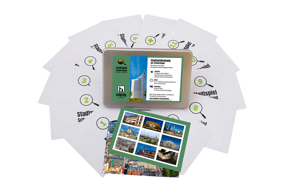 Mit der Schnitzeljagd Chemnitz erwartet Euch eine eindrucksvolle Möglichkeit, die Stadt ganz neu zu erleben. Darin befinden sich 11 verschlossene und nummerierte wiederverschließbare Karten mit Rätseln, deren Lösung Euch von Station zu Station führt. Jeder Hinweis bringt Euch nicht nur einem Ziel näher, sondern auch den historischen und kulturellen Highlights dieser Stadt. Dabei bestimmt Ihr selbst Euer Tempo – ganz ohne Zeitdruck. Ob mit dem Lieblingsmenschen oder als kleine Gruppe: Diese individuelle Form des Sightseeings schafft nachhaltige Erinnerungen. Nutzt diese Gelegenheit, um ganz bewusst Zeit zusammen zu verbringen und Chemnitz von einer persönlichen Seite kennenzulernen. Startet jetzt Eure ganz eigene Schnitzeljagd Chemnitz!