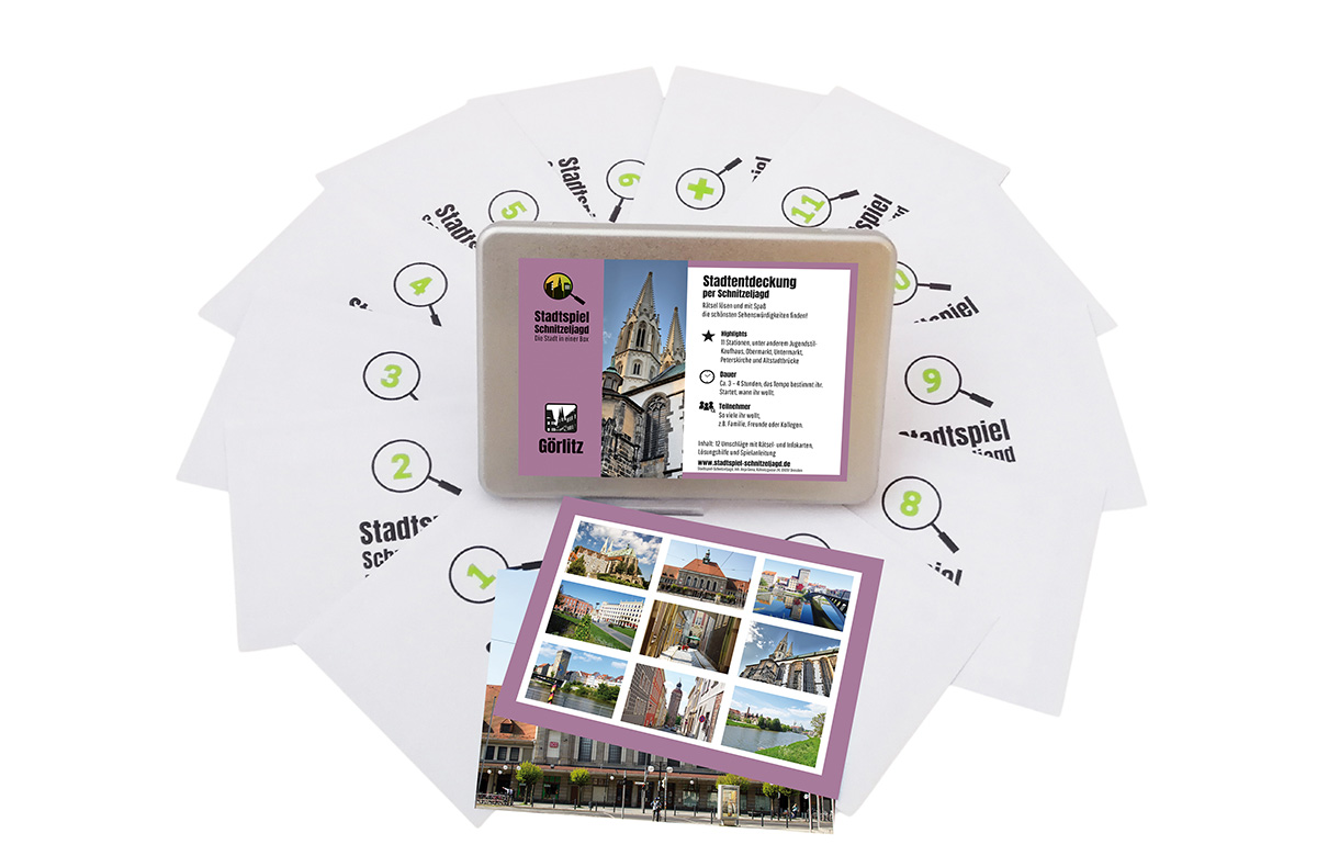 Die Stadtrallye ermöglicht es Dir, die schöne Stadt Görlitz mit Spiel und Spaß zu entdecken und Dich genauer mit ihren Sehenswürdigkeiten zu beschäftigen. Dafür erhältst Du eine Stadtspiel-Box mit 11 Umschlägen, die spannende Rätsel für Dich und Deine Freunde bereithält. Hältst Du bis zum Schluss durch? Sei gespannt, wie viel Spaß ein Städtetrip machen kann!