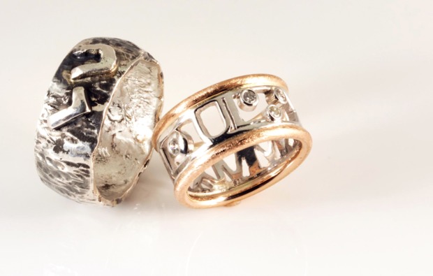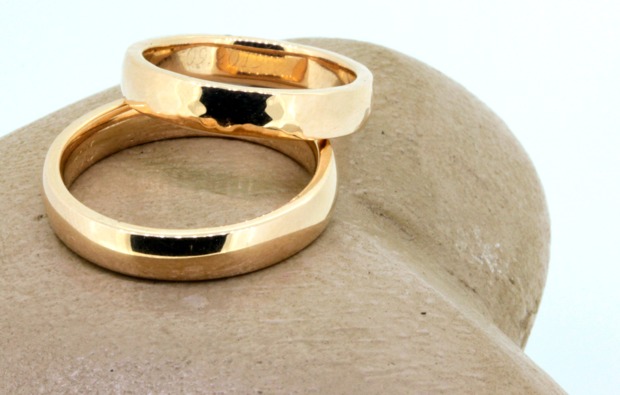 In einem Vorgespräch legt Ihr die Materialien für Eure Trauringe fest. Ihr habt dabei die Wahl zwischen Gelb-, Rot- und Weißgold, sowie Silber, Palladium und mehreren Edelsteinen. Selbstverständlich ist es auch möglich, Euren eigenen Schmuck in die Eheringe einzuarbeiten. Lasst Euch inspirieren und schafft gemeinsam die Zeichen, die Eure Liebe ein Leben lang symbolisieren und begleiten soll.